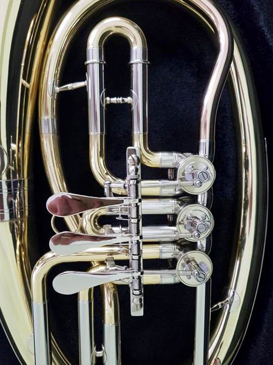 Строй: Bb Материал: медь Мензура: 13,9 мм Раструб: 271,5 мм Клапаны: 4 роторных клапана Покрытие: лак В комплекте: кейс