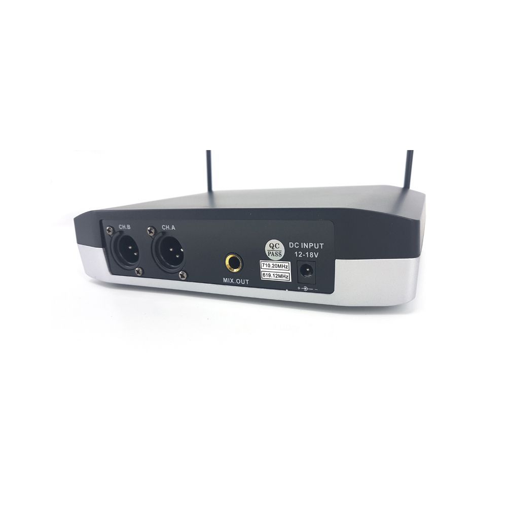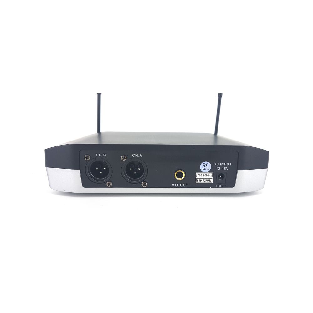 Рабочие частоты (UHF): 710.2/ 619.12 MHz, фиксированные Дальность действия (в идеальных условиях): до 50 м Частотная устойчивость: ±5 PPm/10 KHz Подавление побочных излучений: более 80 dB Количество антенн: 2 Питание: 12~18 V DC 600 mA Выходные разъемы: 2 балансных XLR (3-pin) и 1 разъем MIX OUT JACK 1/4" (TRs 6.3мм) Тип: динамический AF Частотный диапазон: 50 Hz~18 KHz Потребляемая мощность: 100 mA@3 V Тип батареи: AA 1.5 V х 2 шт. Страна-производитель: Китай Вес брутто, кг: 2 Длина, см: 36 Ширина, см: 34 Высота, см: 8