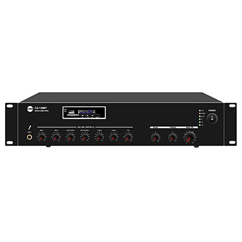 CMX Audio является лидером по производству трансляционного оборудования в Китае. Ассортимент товаров CMX Audio, который мы хотим вам представить, включает микшеры усилители, громкоговорители настенные и потолочные, а также всепогодные звуковые колонны и громкоговорители. Для создания совершенных продуктов компания CMX Audio использует сырье, прошедшее строгий 6-ступенчатый контроль качества QC и QA. Эта система контроля качества соответствует стандартам ISO9001 и ISO14001. Большая часть продуктов CMX Audio соответствует сертификатам CE, RoHS, CB, EN54-16, C-tick, FCC либо UL, и EN54-24. Процесс создания товаров CMX Audio сопровождается высокой целью – быть экспертами в производстве трансляционного оборудования и предвосхищать ожидание клиента. Микшер усилитель 350ватт, Mp3, SD, FM тюнер, Bluetooth, 3 Mic, 2 Aux, 70V/100V/4-16ohm.