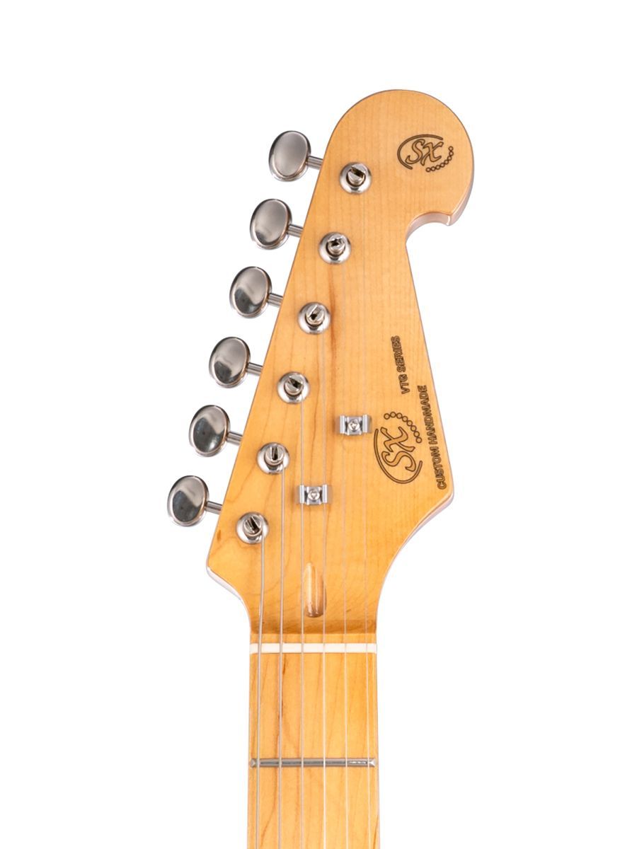 SX SST57+/HSS/2TS – представляет собой электрогитару, которая сочетает в себе высокое качество сборки, надежную электронику и профессиональное звучание. Бренд SX был создан в 1998 году и за короткий срок заработал отличную репутацию. Все инструменты изготавливаются только из качественных материалов, поэтому продукция бренда отличается не только потрясающим звуком, но и превосходным дизайном. Инструменты SX очень часто используются в студиях звукозаписи, в музыкальных учебных заведениях, а также на концертных площадках разного размера. SX сегодня – это надежность и качество по доступной цене. Корпус электрогитары изготовлен из липы, которая обеспечивает яркий звук и богатый тембр с большим количеством оттенков. Гриф и накладка выполнены из отборного канадского клена. Каждая деталь электрогитары прошла тщательную проверку и отвечает самым высоким стандартам. Модель хорошо резонирует, обладает сложными характеристиками звука и развернутым диапазоном.